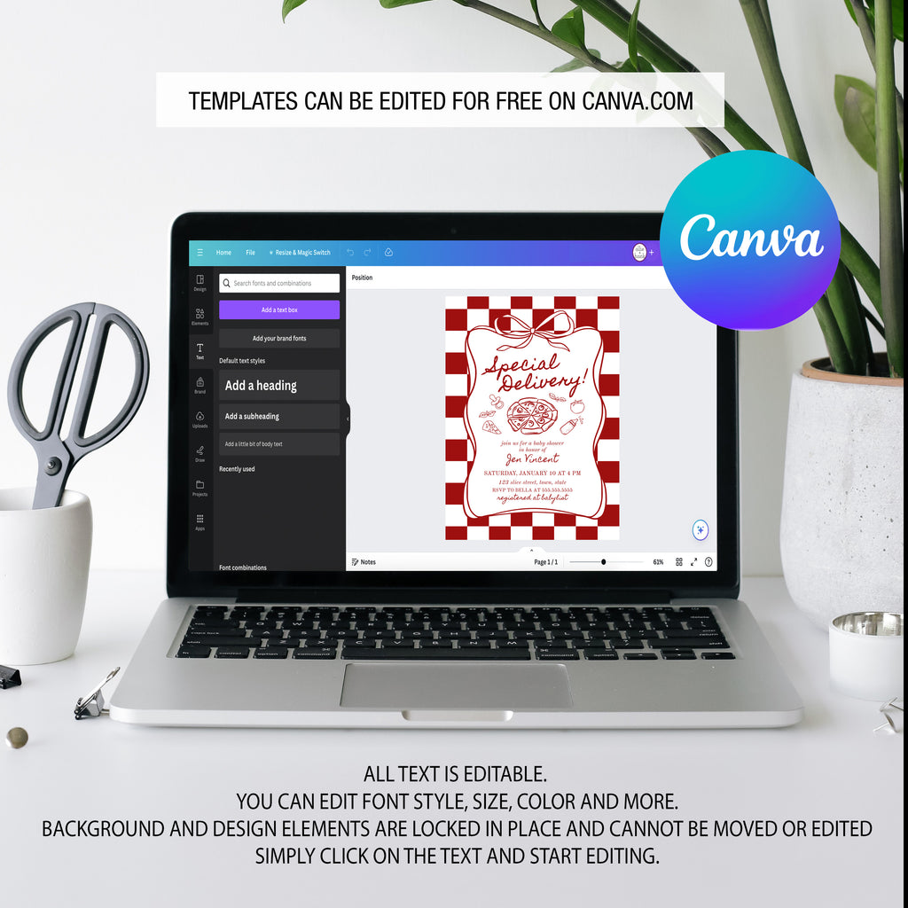 Pizza Baby Shower Invitation | Special Delivery Baby Shower