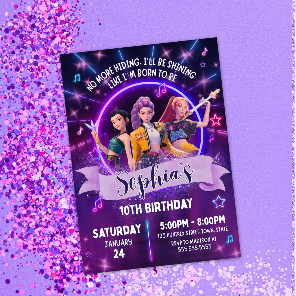 Set the stage for a glittery high energy bash with a custom invitation perfect for your favourite Kpop fan.