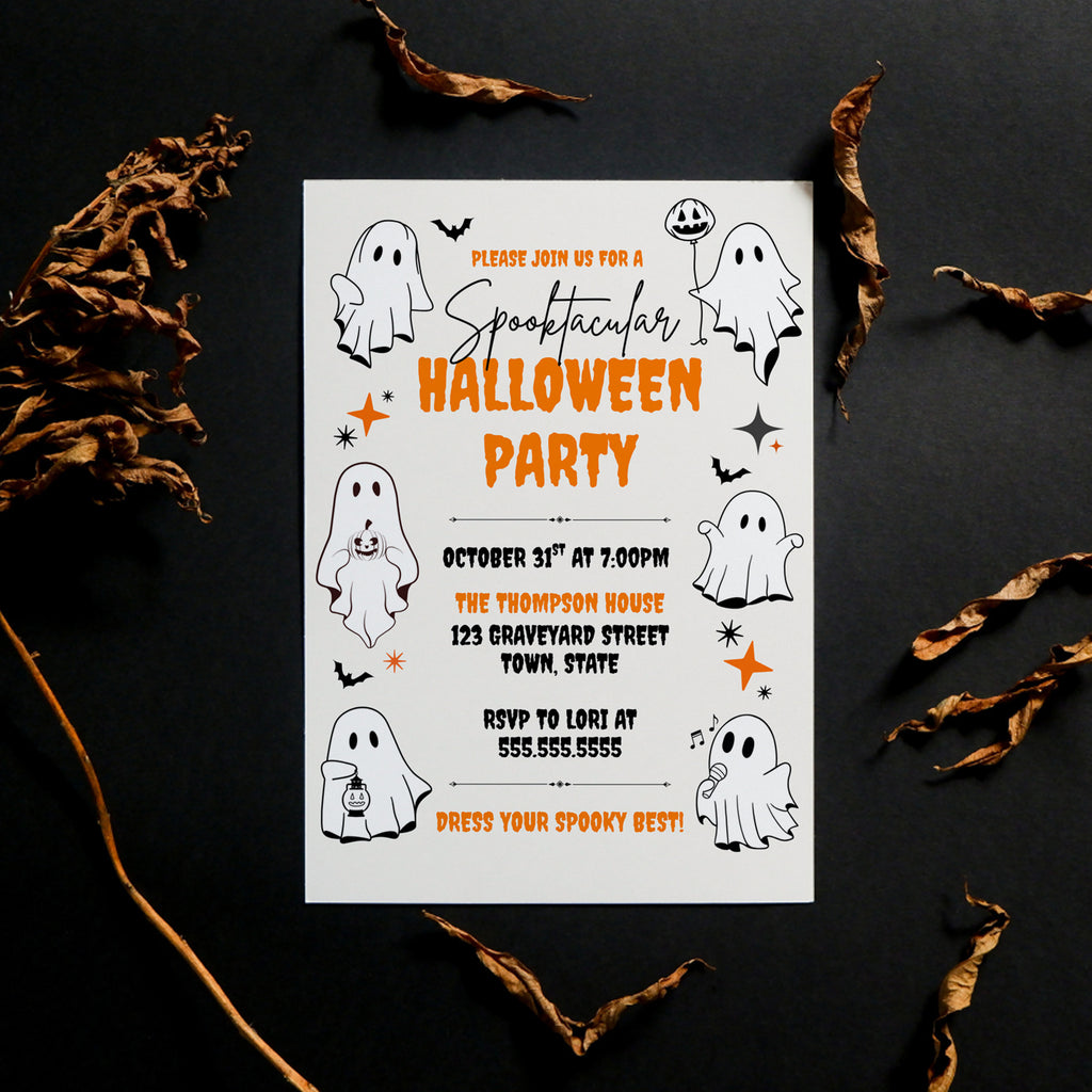 Embrace the spirit of the Halloween season with a spooky ghost themed Halloween invitation.