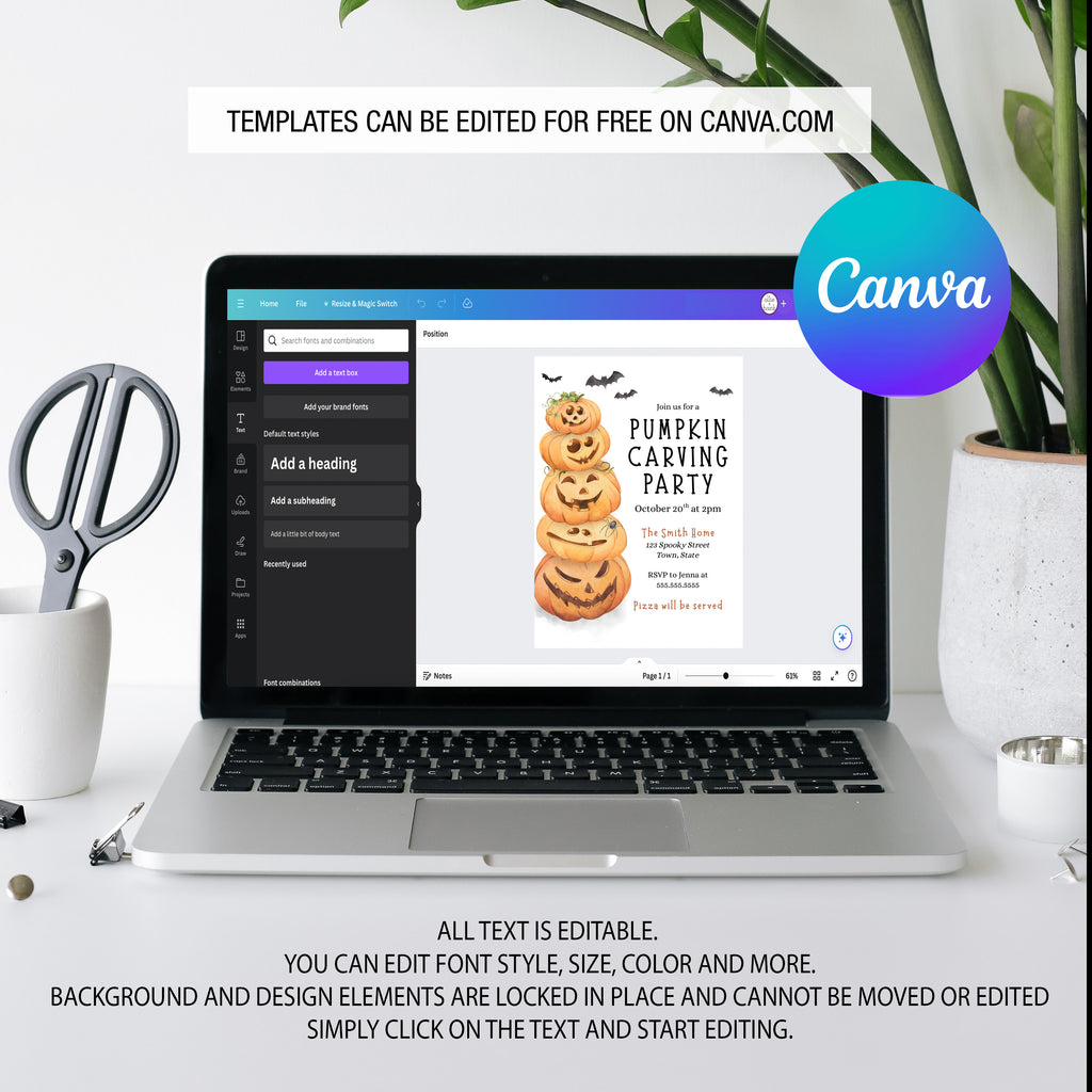 After purchase you will receive an email with a link to download instructions and links to your editable Canva template. Canva is an online design site that is free to use. If you do not have a Canva account you will need to sign up for a free account in order to save and edit your work. Links are included for the 5"x7" invitation template that can be printed once downloaded. Please get in touch if you have any difficulty whatsoever in receiving, editing or printing your files.