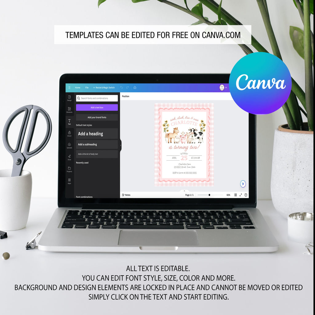 After purchase you will receive an email with a link to download instructions and links to your editable Canva template. Canva is an online design site that is free to use. If you do not have a Canva account you will need to sign up for a free account in order to save and edit your work. Links are included for the 5"x7" invitation template that can be printed once downloaded. Please get in touch if you have any difficulty whatsoever in receiving, editing or printing your files.