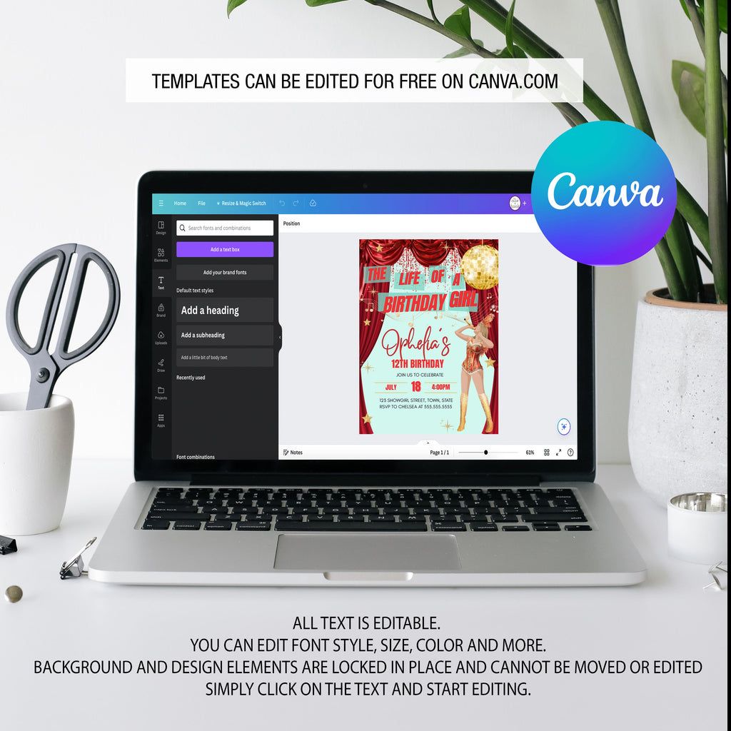 After purchase you will receive an email with a link to download instructions and links to your editable Canva template. Canva is an online design site that is free to use. If you do not have a Canva account you will need to sign up for a free account in order to save and edit your work. Links are included for the 5"x7" invitation template that can be printed once downloaded. Please get in touch if you have any difficulty whatsoever in receiving, editing or printing your files.