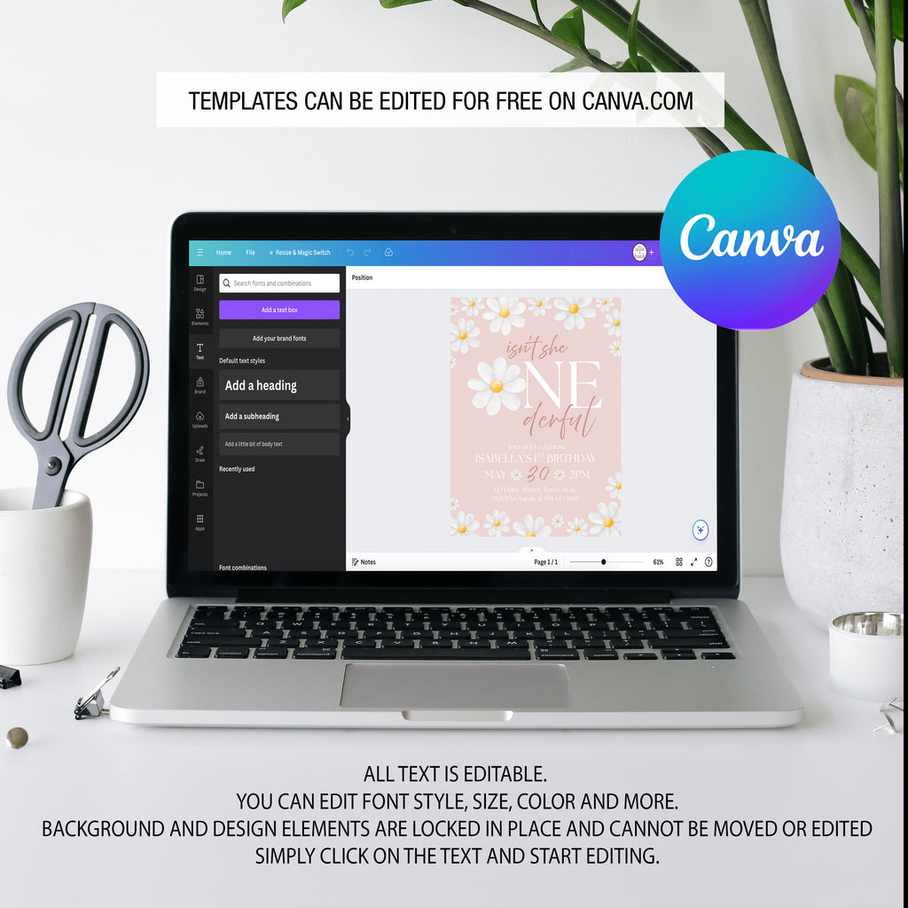 + All text on template is editable using Canva. You can change font style, color, size, delete text blocks and more.