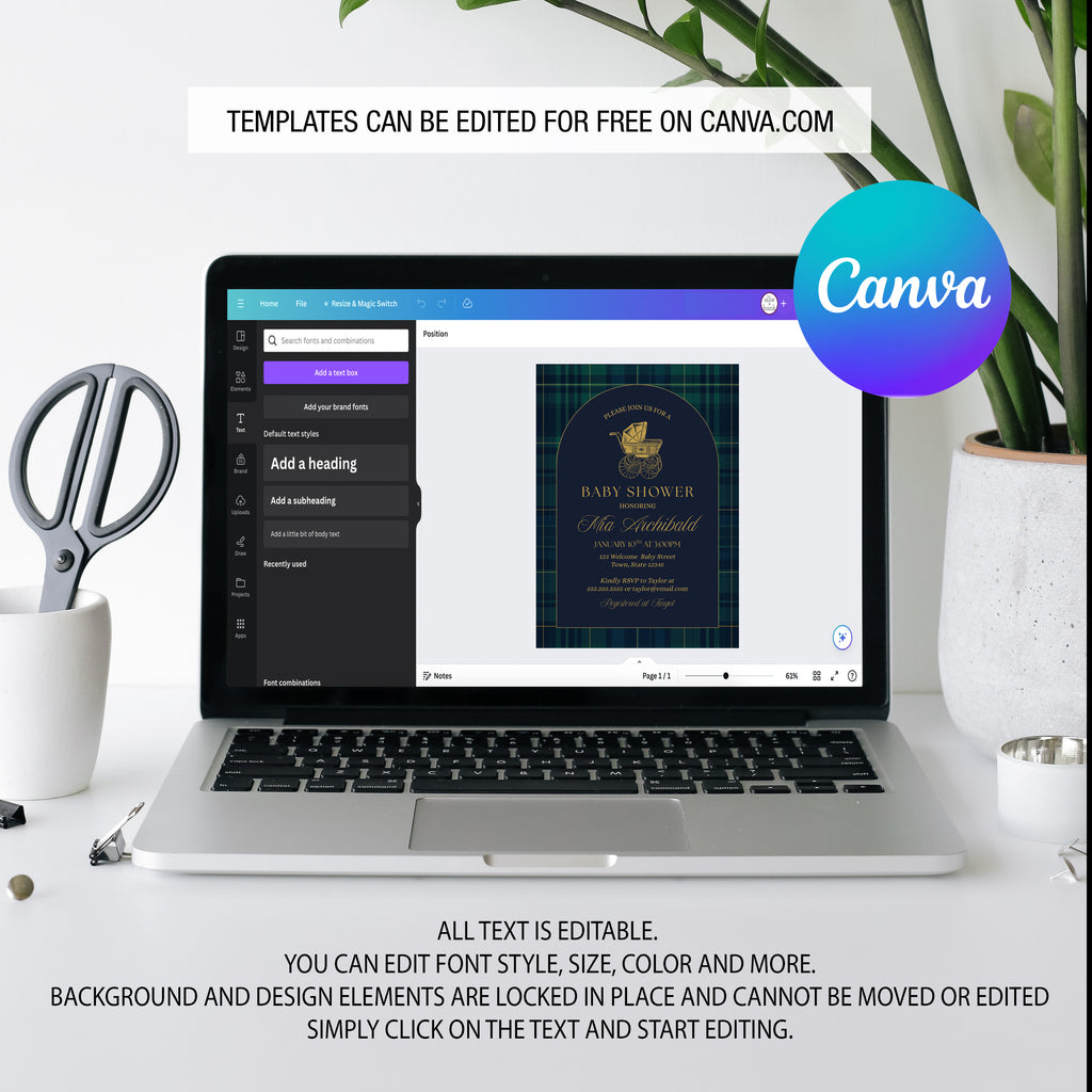 After purchase you will receive an email with a link to download instructions and links to your editable Canva template. Canva is an online design site that is free to use. If you do not have a Canva account you will need to sign up for a free account in order to save and edit your work. Links are included for the  5"x7" invitation template that can be printed once downloaded. Please get in touch if you have any difficulty whatsoever in receiving, editing or printing your files.